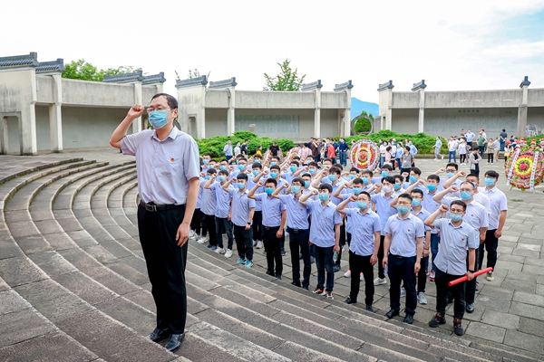 15日上午,團(tuán)員青年們來到?jīng)芸h的皖南事變烈士陵園,向革命英烈敬獻(xiàn)花籃,并重溫入團(tuán)誓詞,參觀了無名英雄烈士墓、主題廣場、主碑紀(jì)念廣場,追憶崢嶸歲月,緬懷革命先烈,近距離感受到偉大的新四軍精神。在云嶺新四軍軍部舊址紀(jì)念館,大家瞻仰當(dāng)年新四軍戰(zhàn)士爭取民族獨立的歷史遺跡,“鐵軍”風(fēng)范浮現(xiàn)眼前,進(jìn)一步厚植了愛黨、愛國、愛社會主義的深刻情感。