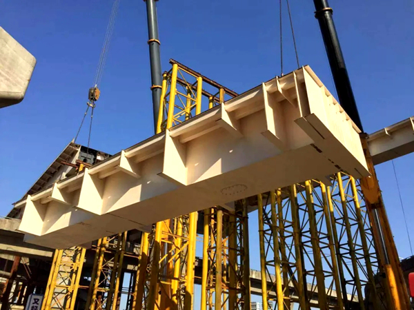 傳統(tǒng)的澆筑混凝土的建設(shè)方法相比,連續(xù)鋼箱梁施工猶如拼搭“樂高”積木,對(duì)周邊交通影響小,在保障通行、縮短工期等方面優(yōu)勢(shì)明顯。